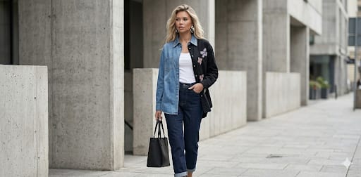 Sfat de Styling: Pentru a transforma piesa de zi într-un adevărat „showstopper”, înlocuiește topul casual cu o bustieră sau un body elegant. Introdu cămașa într-o fustă creion neagră, eventual din piele ecologică, pentru a marca talia. Adaugă cercei mari rotunzi și pantofi cu toc. Această combinație balansează perfect volumul cămășii cu senzualitatea fustei.